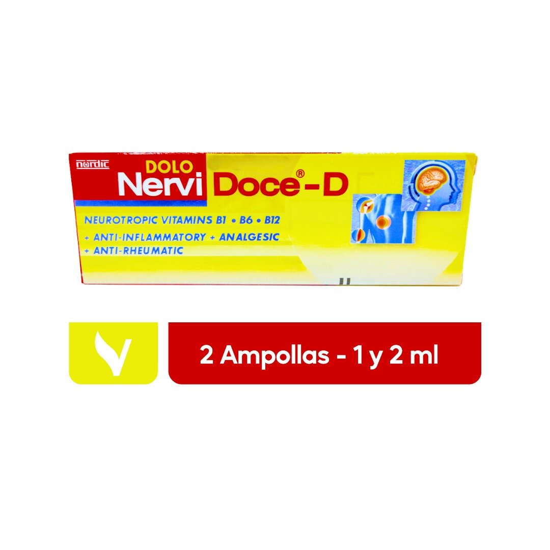 Administrar: 1 ampolla de Dolo Nervi Doce -D 1 vez al día por 5 días. Recomendaciones:Consulte a su médico antes de utilizar éste prodúcto en caso de embarazo, lactancia, pacientes con problemas cardiacos, presión alta, insufiencia renal, hepatopatías, úlceras gástricas, pacientes tomando glucorticoides, ácido acetilsalicilico. En caso de hipersensibilidad a algunos componentes, suspenda su uso.