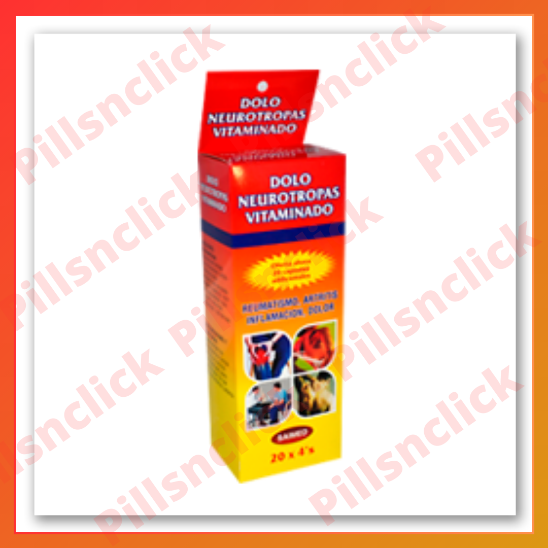 El Dolo Neurotropas Vitaminado es un suplemento en forma de cápsulas que ofrece un alivio efectivo para una variedad de condiciones dolorosas. Cada caja contiene 80 cápsulas distribuidas en 20 sobres, con 4 cápsulas en cada sobre.