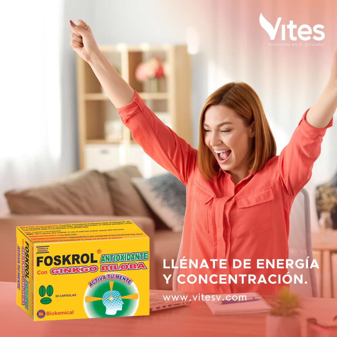 Para esfuerzos físicos y psiquicos, estados de debilidad mental, falta de capacidad de concentración, falta de memoria, estados de agotamiento neuro cerebral, Foskrol con Ginkgo Biloba proporciona fuentes de suplemento energético a las células nerviosas, mejorando el trabajo del sistema nervioso en general, así como su capacidad física.